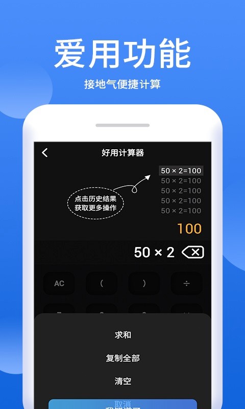 口袋计算器是专为学生和上班族打造的科学计算工具,包含了各种基础计算功能,能够满足学生、工作学习中的各种需求。它不仅支持普通计算,还可以进行复杂的加减乘除计算,包括三角函数计算、角度弧度计算、平方根计算等,让您在不同时期内轻松完成计算。
