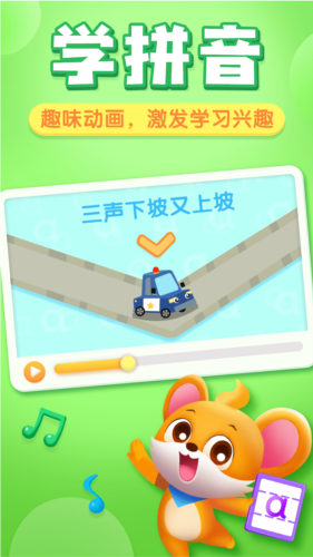 -通过有趣有爱的儿歌动画、场景化教学引导以及有趣的故事情节游戏,让孩子在轻松快乐的环境中掌握所学内容,提高英语听说能力和专注力。