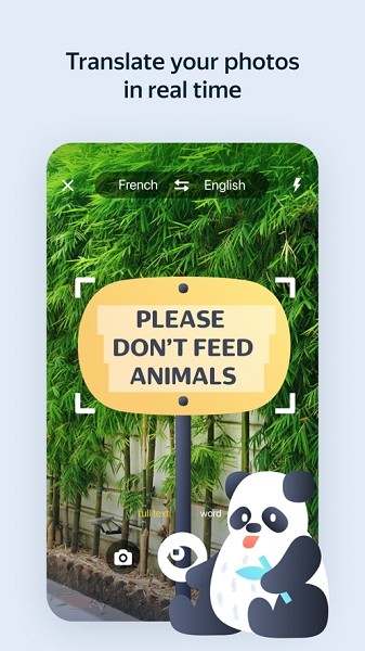 翻译器支持拍照翻译,可对着图片上传或选取相册中的图片文件提取成目标语言,并保存至本地。