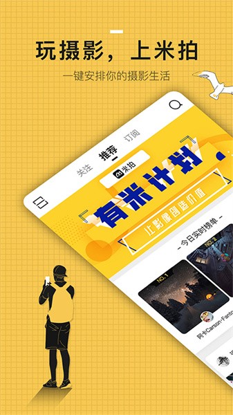 米拍摄影是一个专业的手机相机APP,为广大爱好摄影的用户提供拍照、剪辑、分享作品、交流讨论的平台。