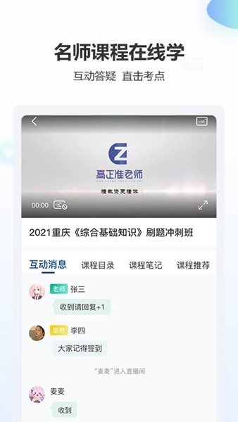 多渠道互动交流无障碍:不仅能满足考生在移动端浏览各类精品网课时长的需求,还可以利用应用内的论坛工具即时沟通问题,促进彼此间的互动交流。