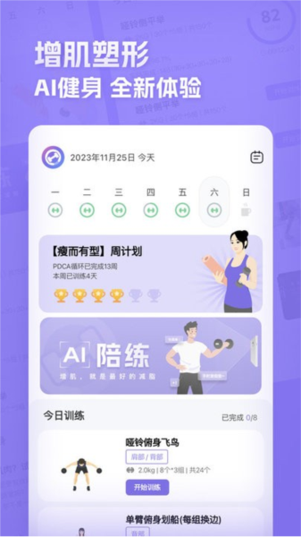 从初学者到进阶的各个阶段,提供全方位的训练指南,包括:减重、塑型、增强免疫力、增益调节等等,满足不同的用户群体的需求。