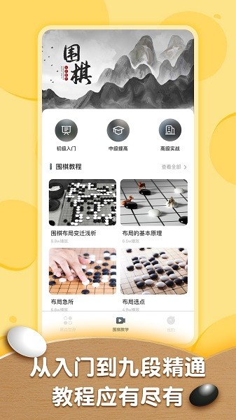 软件内有各种各样的围棋教学内容可供用户选择使用,让孩子可以在这里进行全面的围棋知识启蒙。同时软件中还拥有各种不同难度的围棋课程资源等你来学,感兴趣的话快来下载体验吧!