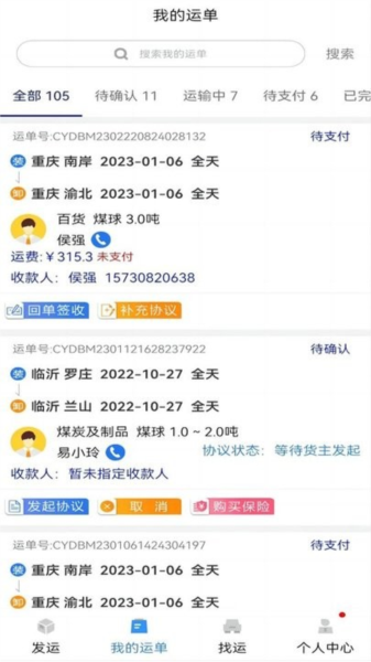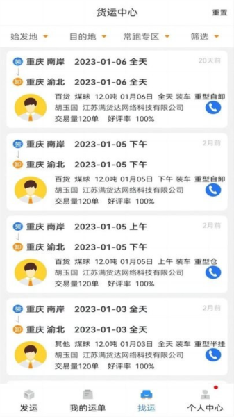 1)货配货:根据个人承运企业的要求快速找车配车(专线专线)