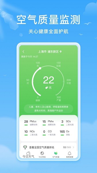 软件主要为用户提供实时天气预报和空气质量等信息预报让您查看天气更加的了解天气情况,还可以预测未来几天的出行时间安排哦,感兴趣的用户快来下载使用吧!