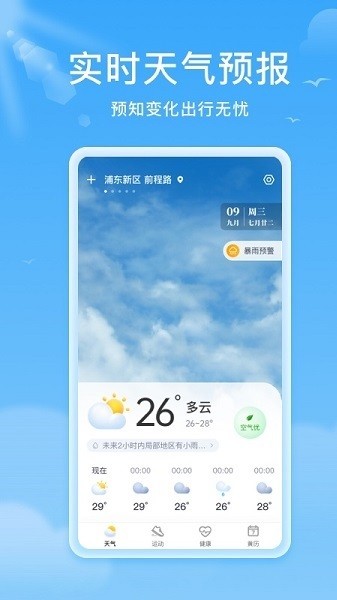 轻松查阅24小时内天气变化,提早预防早晚温差过大;