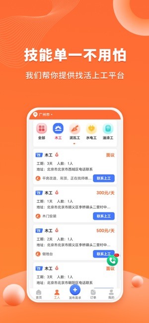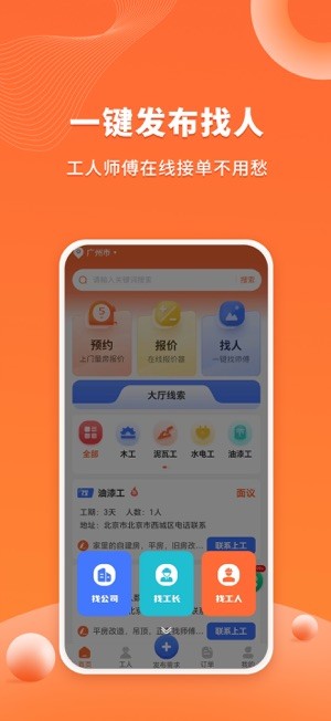 1、【找活干】一键发布需求,精准推送附近优质订单;