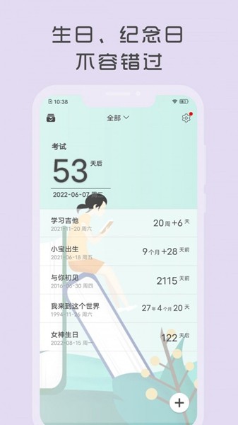 倒数日、纪念日一键设置,准时提醒不再错过。