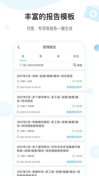 查看患者报告情况并可上传图片及附件到云存储空间;