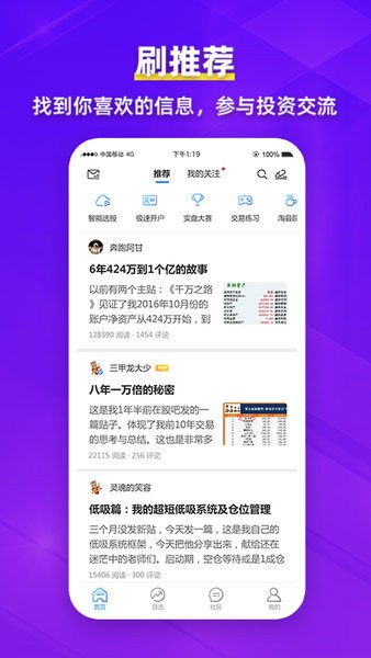 这里汇集了众多炒股高手,你可以在这里分享自己的炒股经验,与其他股市爱好者一起交流互动,更有股市大盘分析、股市热点事件等功能让你了解股市动态。欢迎有需要的朋友下载使用!