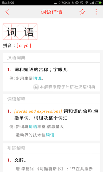汉语词典app是汉字学习软件,汉英汉译,词库齐全。内容丰富,包含了拼音、部首、笔画数、五解、成语等内容和生僻字的解释。还有笔画顺序查询及发音以及部首索引等等功能供用户使用哦。