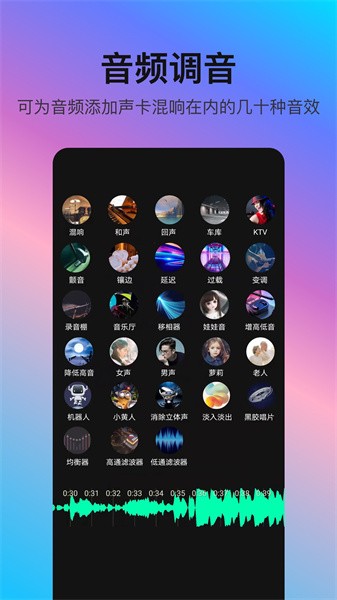 音编美声app支持音频裁剪、音频转码、混音、音效调整、音频转格式等功能,让你轻松制作专业级的音乐作品;