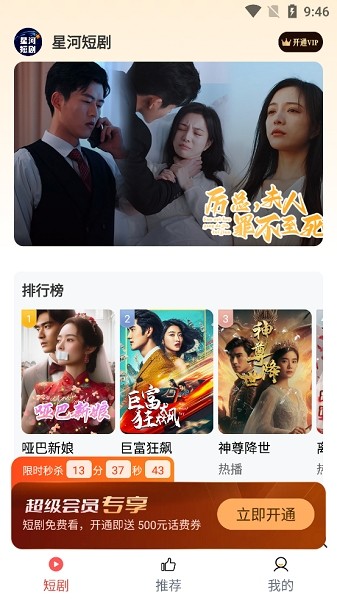 星河短剧App每日精心挑选最新、最热的短剧,保证您的娱乐喜好。