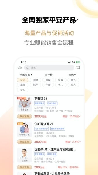 1、专业的保险商城:涵盖包括意外险、健康险、旅游险以及其他保险产品,满足用户的各种保险选择。