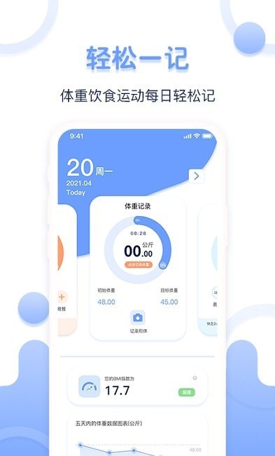 支持体重趋势分析模块,您可以清楚地了解不同时期的总体体重水平;:利用大数据分析功能展示您的体重走势,助您做出准确的投资决策;:结合用户的日常体重趋势分析能力,为用户推荐符合其需求的减肥方案;:提供丰富的营养知识供您阅读学习,并为您提供专业的指导意见。