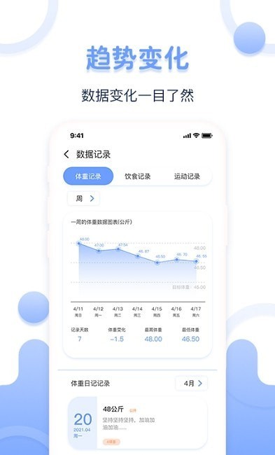显示与你保持一致的体重趋势,以帮助你更好地控制身材,保持健康的习惯。