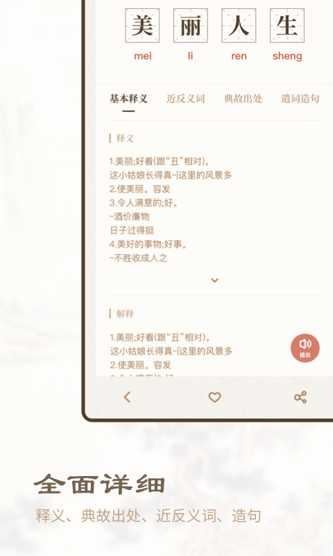 它收录了海量的成语内容,涵盖了各种各样的成语和例句,帮助用户全面理解并掌握成语的含义和用法。这款软件不仅提供成语查询功能,还为用户提供了成语注音、成语拼音、解释和近反义词等详细的信息,让用户了解更多的成语含义和用法。