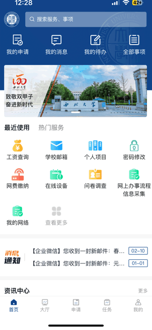 ◆高效办公:集成了校园通讯录、会议室预约系统、校园卡充值入口等实用的功能,大大提高了工作效率。