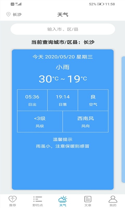 野鱼点,提供野地天气预报,随时随地知晓野外的天气变化