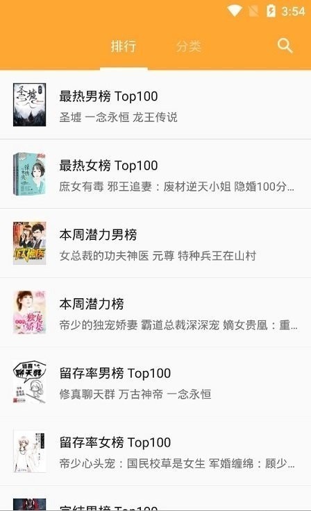 3、超多的小说分类让用户根据自己的喜好自由的选择你喜欢的小说。