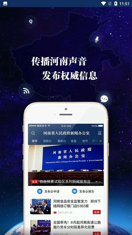 河南发布新闻融媒体客户端APP旨在为河南省用户提供全方位的新闻报道和服务!