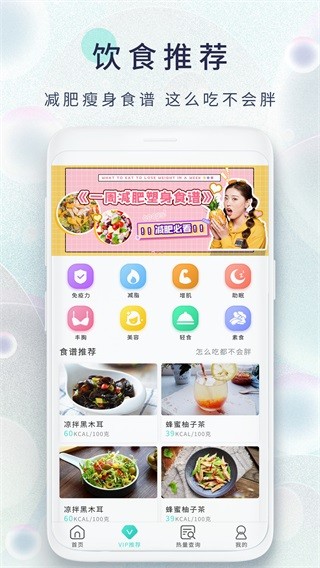 6.“减肥食谱”模块:精心准备不同类型、不同难度的食谱推荐与菜品搭配指导,帮助大家轻松做出完美的身材。