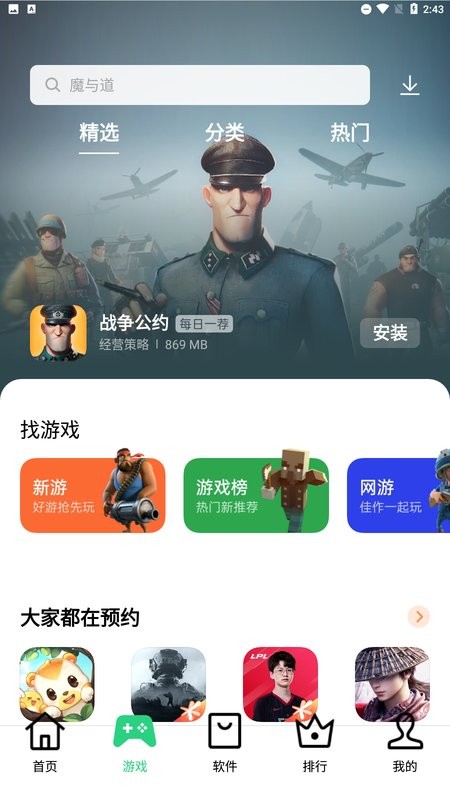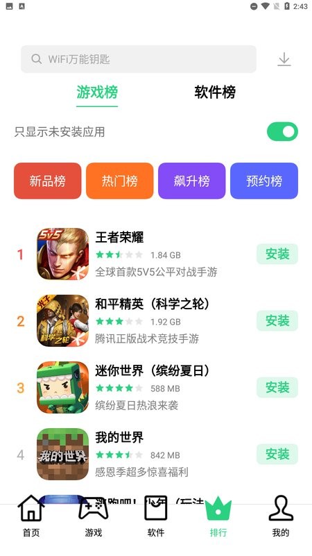 4、人气排行:根据下载排行推荐给你最热门最新鲜的应用和游戏;