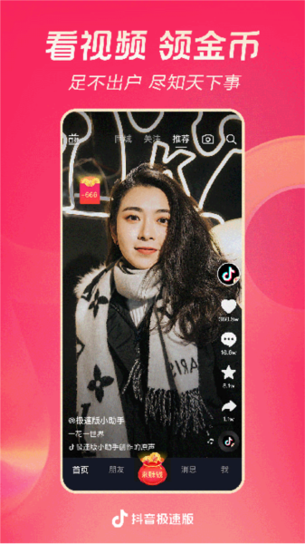 抖音赚钱版是一个抖音官方出品的短视频分享平台,用户在抖音上刷短视频就能赚到红包奖励,海量的任务可以完成哦,并且还有很多福利等你来拿哦!