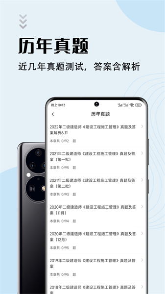 --离线做题:离线也可以做题,不用联网也可以练题二级建造师考前冲刺题库app是一个专门为需要学习二级建造师的学员打造的刷题练习软件,在这里有丰富的题库内容供你选择,让你随时随地在线刷题复习,海量题库等你来刷,还有超多错题解析功能哦,喜欢的朋友赶紧下载吧。