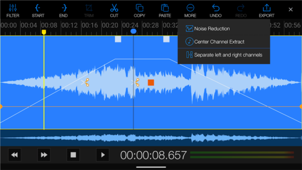ezAudiocut是一款专业的音频编辑和剪辑软件,该软件能够对你手机里的音乐进行处理并合合在一起。用户可以通过这款软件将自己喜欢的音乐内容快速的导出为MP3格式文件来分享给好友或其他应用上!