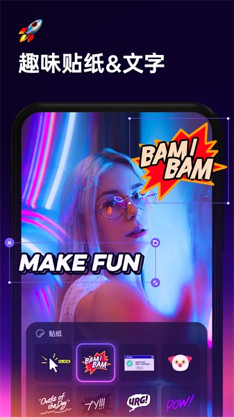 慢动作、快动作、配乐,以及视频字幕与贴图,让你的作品表达更有趣味性。