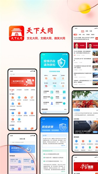 软件功能丰富实用,为用户提供了大同市最新的资讯内容。通过这款软件,用户可以了解大同的大小事、关注大同的政策信息和民生动态等;同时,这款软件还支持在线办理各种政务事务,包括社保查询、违章处理等,非常方便快捷。此外,天下大同软件不仅提供实时更新的大同本地最新新闻消息和热门话题讨论,还拥有丰富的便民服务工具,如天气预报、交通路线规划、快递查询等,满足用户的日常生活需求。