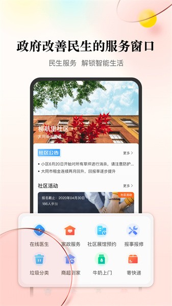 “社会热点上大同地区民生生活信息更新推送给大家”是“社会热点上大同地区民生生活信息更新推送给大家使用”的手机APP,以“社会热点上大同地区民生生活信息更新推送给大家使用”为例,用户通过微信公众号下载安装后即可直接进入软件中进行实名认证,并选择对应的身份和所在区域,完成人脸识别操作,然后就可以获取当地的民生生活动态了。