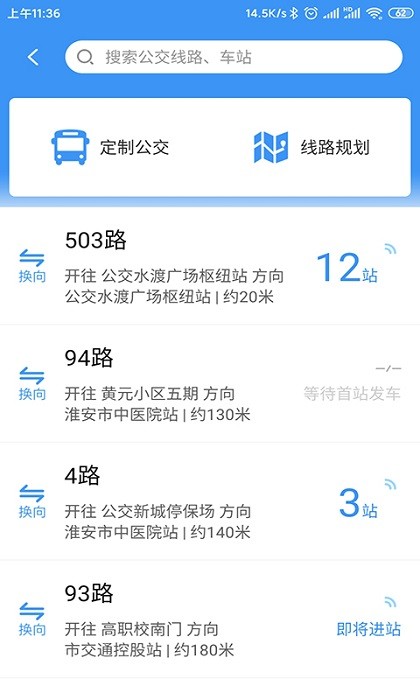 可在界面内检索查询指定公交线路