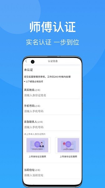 师傅还可以提前预约上门安装或保养服务,避免排队烦恼,大大节约时间。匠小佐师傅下单注册账号密码为会员,这是专为广大用户打造的一款手机端服务平台,软件中用户可以快速进行实名制认证操作,一键即可查看个人信息和订单情况等等,对软件感兴趣的话不妨点击下载试试!