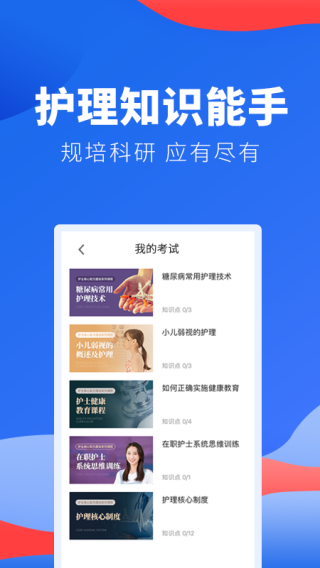 提供多种多样的选择选择,如护理科室考试模拟、医疗知识学习等不同领域的内容供用户自由使用。