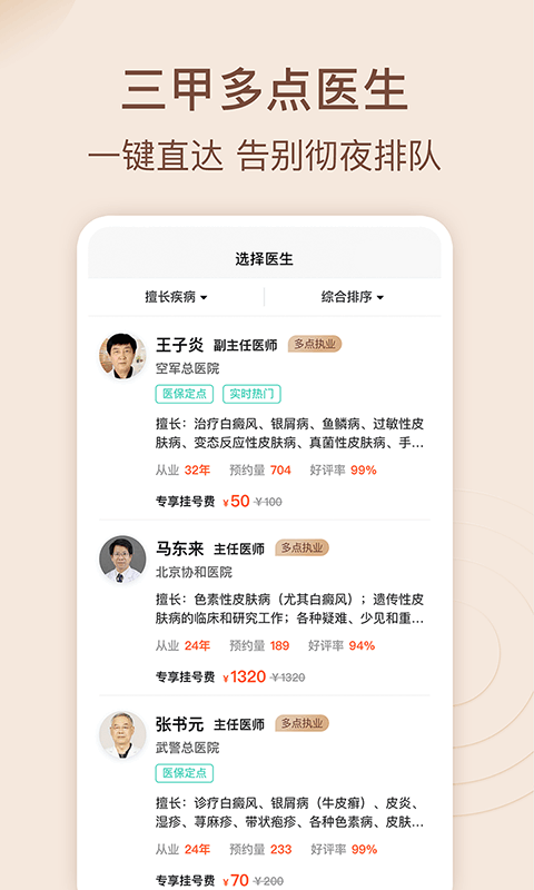 2、涵盖的皮肤科医生非常全面,不仅包含皮肤科医生而且覆盖了多个皮肤科医生;