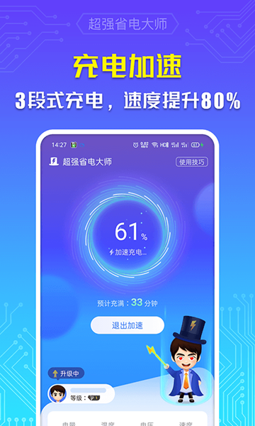 超能省电大师是专业的电池优化工具,可以检测电池健康状态、关闭耗电应用、降低CPU温度、提高电池寿命,一键加速,让用户更放心。