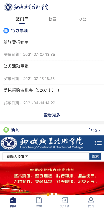 聊城职业技术学院移动端是教职工所服务的工作助手app,这里有非常多的功能和服务提供给广大师生们去体验哦,随时都可以在线上办理很多业务或者管理自己的事务哟,而且这款平台提供的办公功能还是很齐全的呢,大家想要找工作的小伙伴快来下载吧!