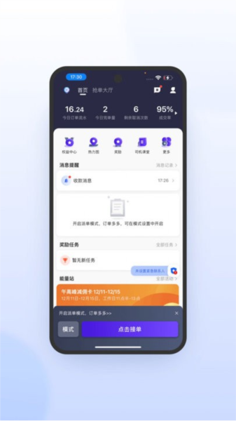 1、【公平抢单】全国千万好单实时更新发布再多维度筛选不错过,从此告别空驶费用。2、【智能派单】系统智能化匹配最优线路优先派单及预约用车需求订单,更多场景支持“接入座驾”。3、【高峰免排队】工作日早8点至23点准时上岗,全程智能督导合理安排上班时间。4【丰富支付】多种主流支付手段任君选择,微信、支付宝、储蓄卡均可灵活切换结算状态。5、【邀请司机赚钱】司机可直接发送邀请码给好友,好友点击链接安装后自己也可以拿到丰厚的奖金奖励。6、【月入万元不是梦】注册送300元新人券,每天限免免息券,轻轻松松挣个零花钱,提现秒到微信零钱!7、【首创司机学院】专业培训,让司机学得开心,考勤签到练车无忧。8、【全屏地图导航】导航升级全屏界面设计简洁明了,操作流程更顺手。