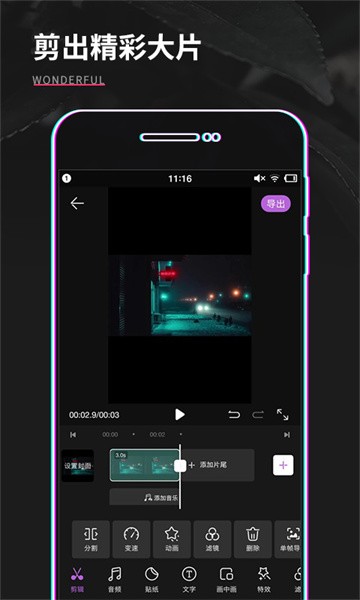 可以对视频进行快速的剪辑和合并,还可以自由添加各种特效以及滤镜等效果使用,让您轻松创作出精美的视频。