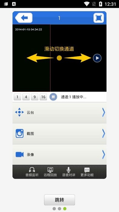 云视频通话,远程控制、录像回放,以及远程分享和保存。可以连接多个设备并同步您的视频内容,包括网络摄像头,警报,视频和音频。