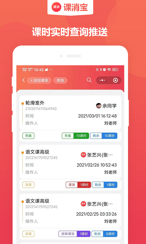 课消宝客户端为广大教师所提供一个教务管理系统,便于学校实时掌握每个学生的学习状况.