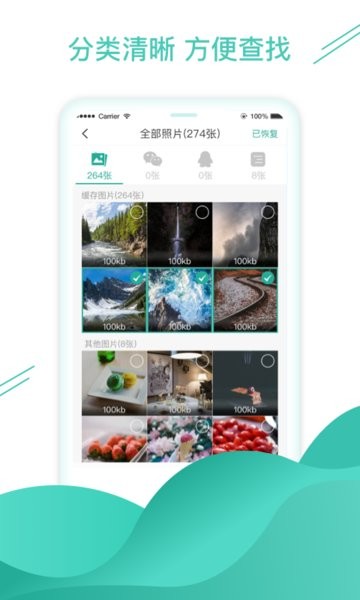 软件中有着海量功能等你体验,一键即可快速扫描查看手机上的所有数据信息。支持照片、视频以及其他类型的图片格式进行选择性使用,操作简单易上手,对软件感兴趣的话不妨点击下载试试!
