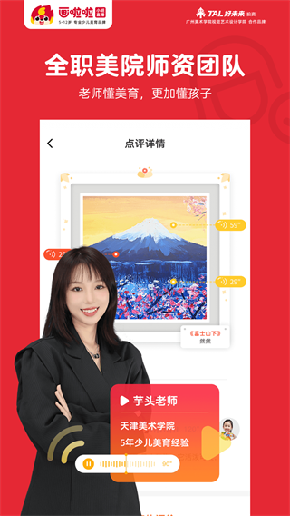 画啦啦少儿美术课程学习标签云课堂app是一个专业的美术教育平台,这款软件为孩子们提供优质的美术知识讲解以及教学方法等内容哦,这里有海量的线上授课教师可以选择使用,还有各种不同类型的课程任你挑选。