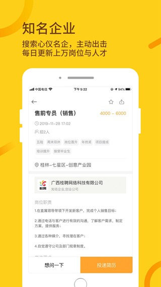 除此之外,广西壮族自治区人民所呈现在广西人才网app中还有超多优质企业在线入驻使用,让你能够轻松解决找工作的难题!有需要的用户快来下载试试吧。