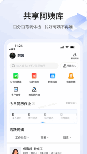 58智慧家政服务管理的办公化平台特色: