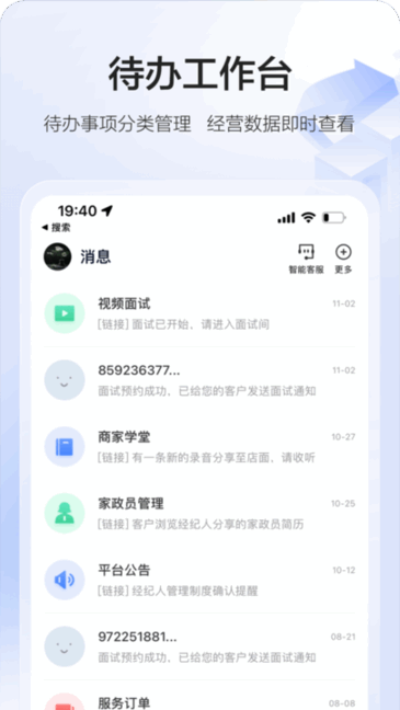 2、智能化派单流程优化:58智慧家政服务管理的办公化平台通过智能派单模块,自动识别并推送符合条件的订单信息,确保用户的订单及时到达,提升工作的效率。