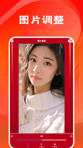 支持对照片进行亮度、对比度、饱和度的自由调节调整;