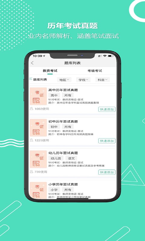 大家还可以了解更多优质的信息哦。全民考教师资格证考试是款非常方便的手机刷题工具,开启之后我们就能在线进行各种试题练习和体验。